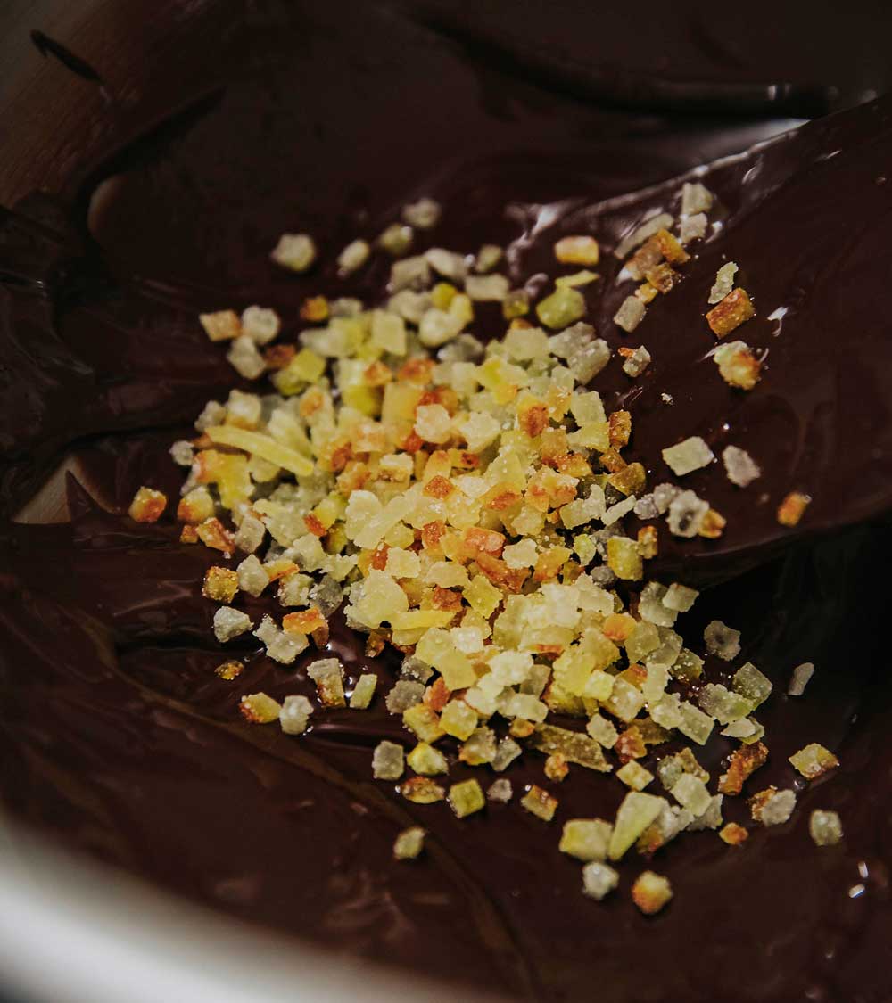 The orange/salt combination is a classic in the chocolate world. To’ak and CxM have designed this flavor using ingredients from the Galápagos Islands. Here they use the Italian confiserie technique known as “frutta candita,” which preserves the skins of oranges with sugar. The candied oranges are cut into small cubes, individually covered in cacao butter, and integrated into the chocolate along with salt crystals.