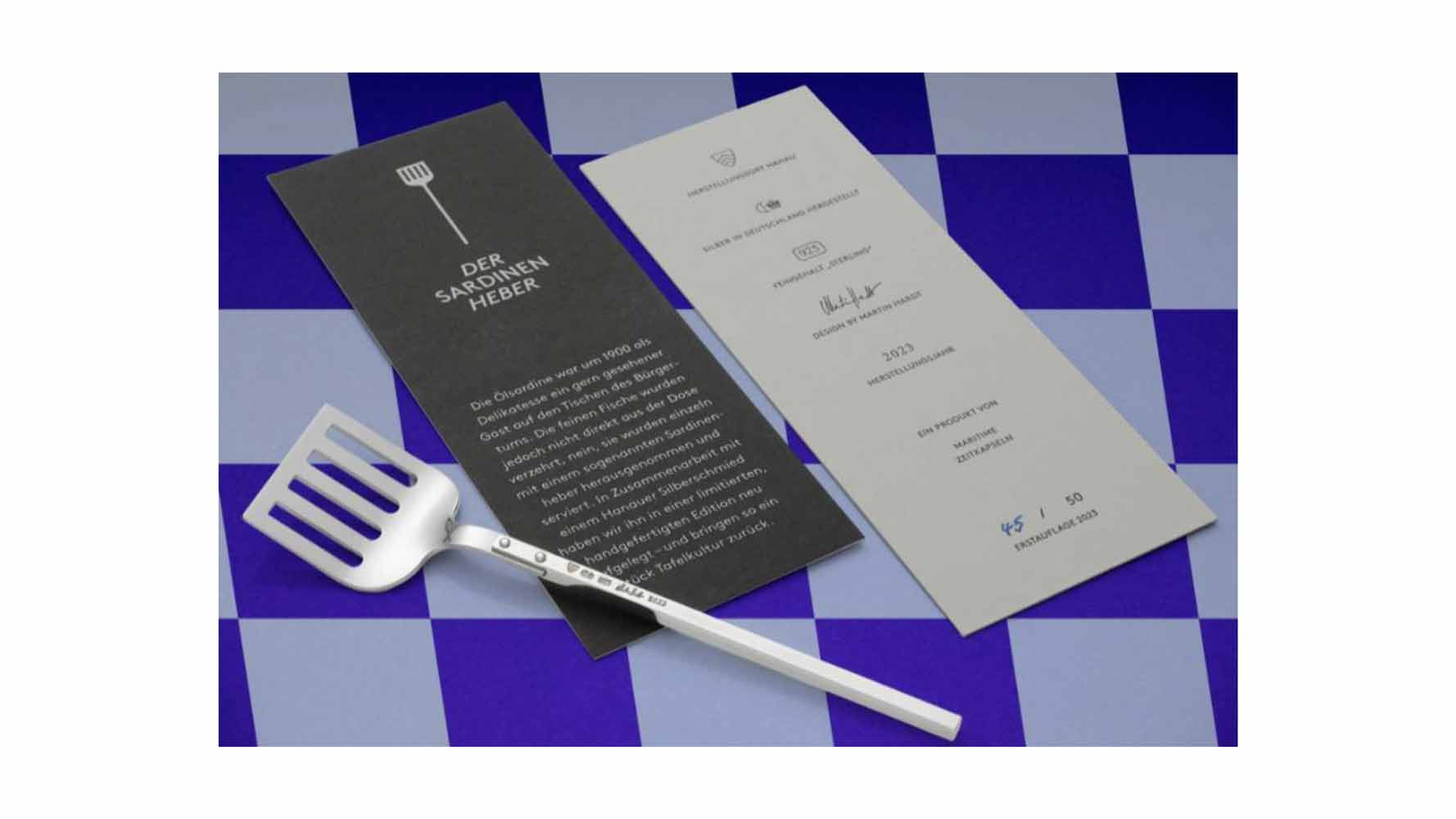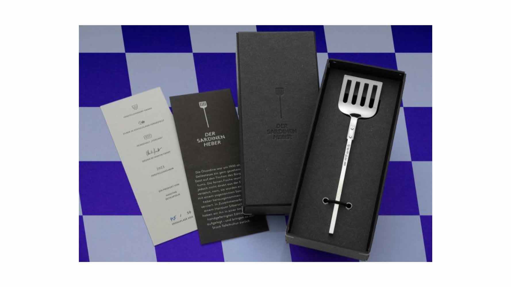 In 2023, we teamed up with Hanau-based silversmith Martin Hardt to produce a handmade, limited first edition of 50 sardine forks to bring this object of dining culture back onto the tables of those who enjoy sardines. After the limited first edition, we will produce the sardine fork in regular annual editions and include it in our range.