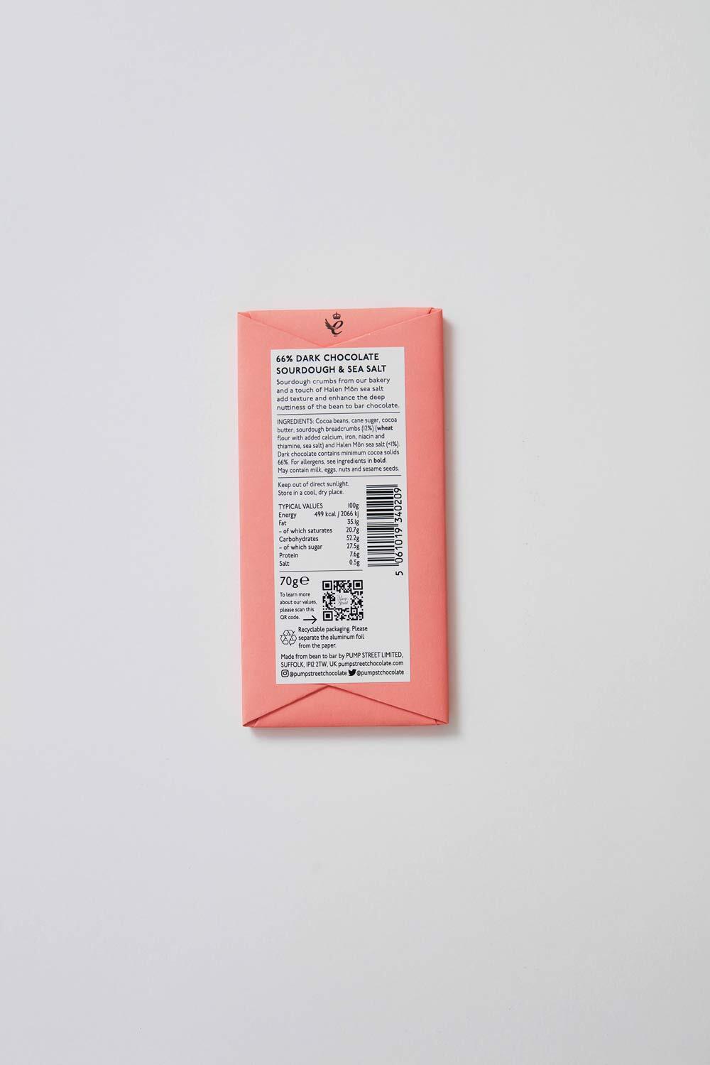 - 66% dark chocolate with sourdough bread crumbs and sea salt