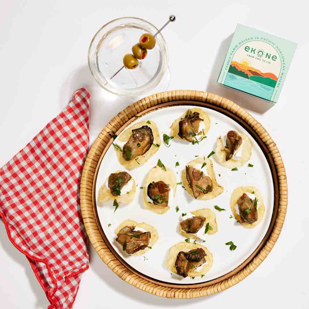 Pacific Oysters are grown on Ekone’s farms in Willapa Bay located on the coast of Washington State. They are grown using the long-line method to promote the highest quality oyster, and ensure they are always free of sand and grit. They are harvested fresh then brought to the Ekone cannery in Bay Center, WA, where the oysters are steamed and opened, then brined in small batches. The brined oysters are then placed meticulously on stainless steel racks and smoked using maple chips. A true classic that is fresh, all natural and allows the flavor of the oysters to shine!