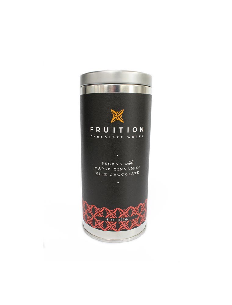 Pecans candied in maple sugar and tumbled in their Dominican origin maple cinnamon milk chocolate. Featuring Mount Mansfield Maple, Burlap & Barrel Royal Cinnamon, and Tanzanian Kokoa Kamili cocoa powder.
