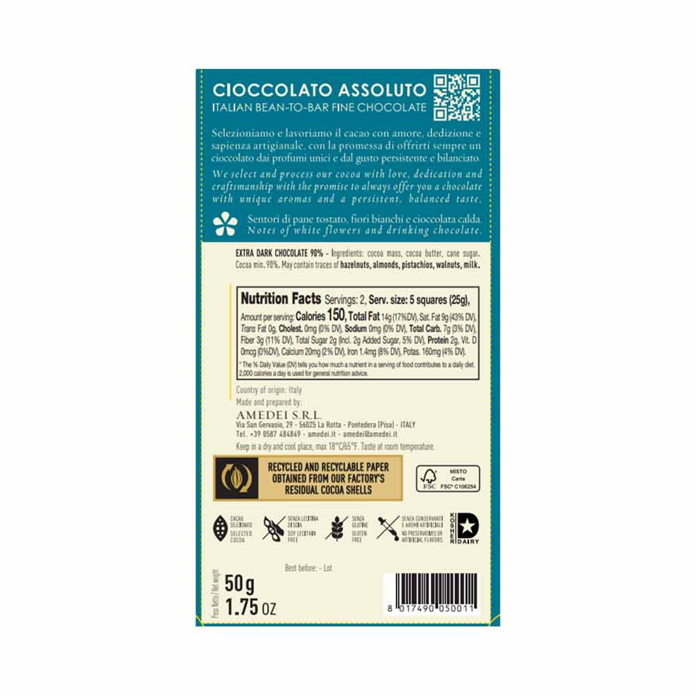 Toscano Black 90%, the novelty in this family, despite the high percentage of cocoa, is a very creamy chocolate, with a very long flavor that leaves, in the end, a very clean palate. Its aromatic charge is persistent and is an invitation to further taste.