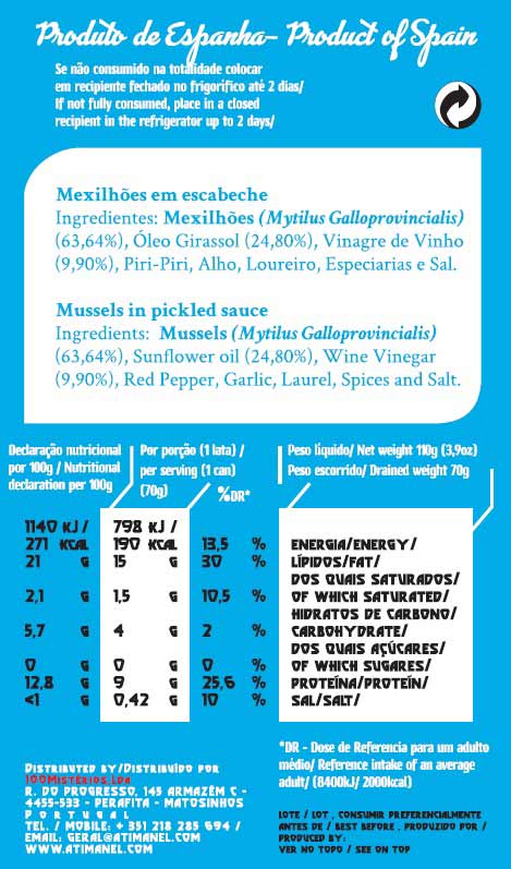 INGREDIENTS: Mussels, Sunflower Oil, Wine Vinegar, Red Pepper Garlic, Bay Leaf, Spices, Salt
