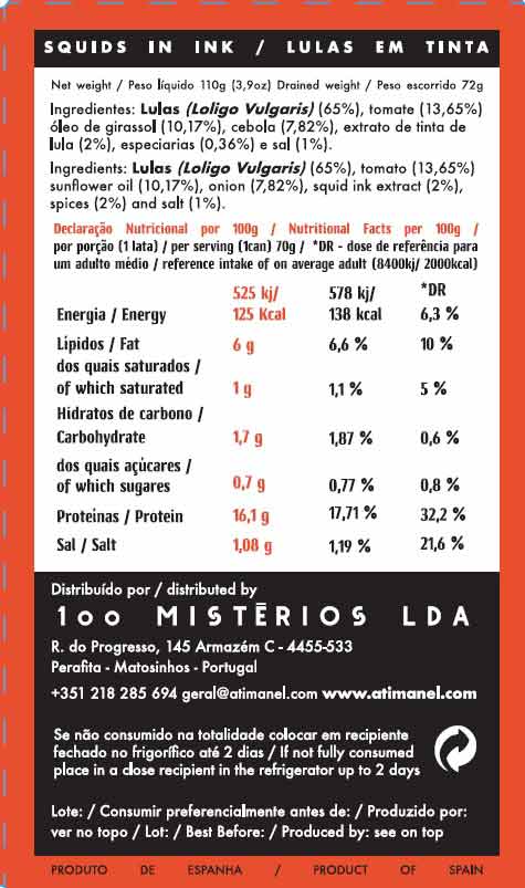 INGREDIENTS: Octopus, Sunflower Oil, Garlic, Salt