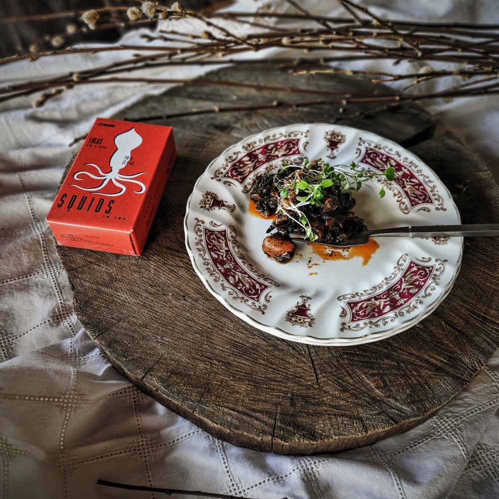 After being harvested off the coast of Spain, the squid land in the storied town of Pontevedra, a village synonymous with quality conserva, where they are cut and canned entirely by hand. Their sauce (a mix of tomato, onion, spices, and of course squid ink) makes a perfect base for rice dishes like risotto or paella, but also goes gorgeously smeared on toast with a pile of these tender pieces laid on top.