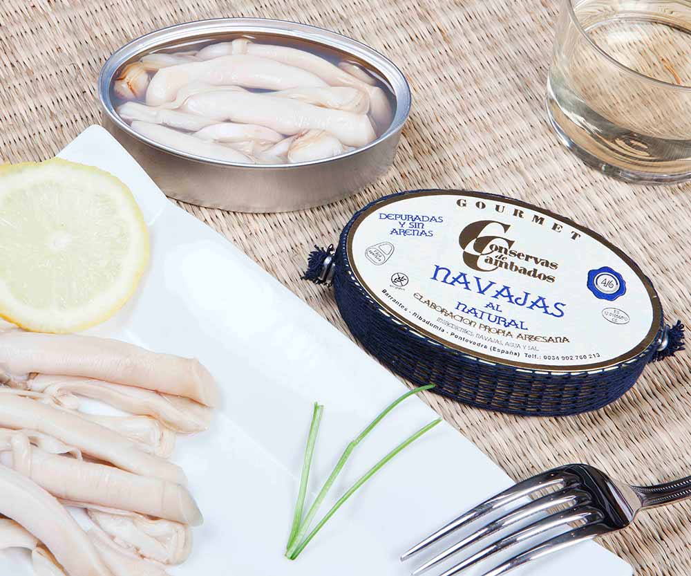 The clams are hand-harvested from sandy beaches and cleaned in Pontevedra to be free of even the smallest grit. Razor shells are also known for their fat content, and its typical to find golden flecks of oil floating atop the briny pool they arrive in. We love these on bread with a drizzle of extra virgin olive oil and lemon zest. We also enjoy piling them atop an oven-baked flatbread with flaky salt and fresh herbs.