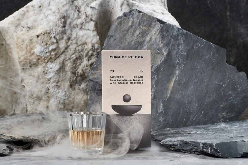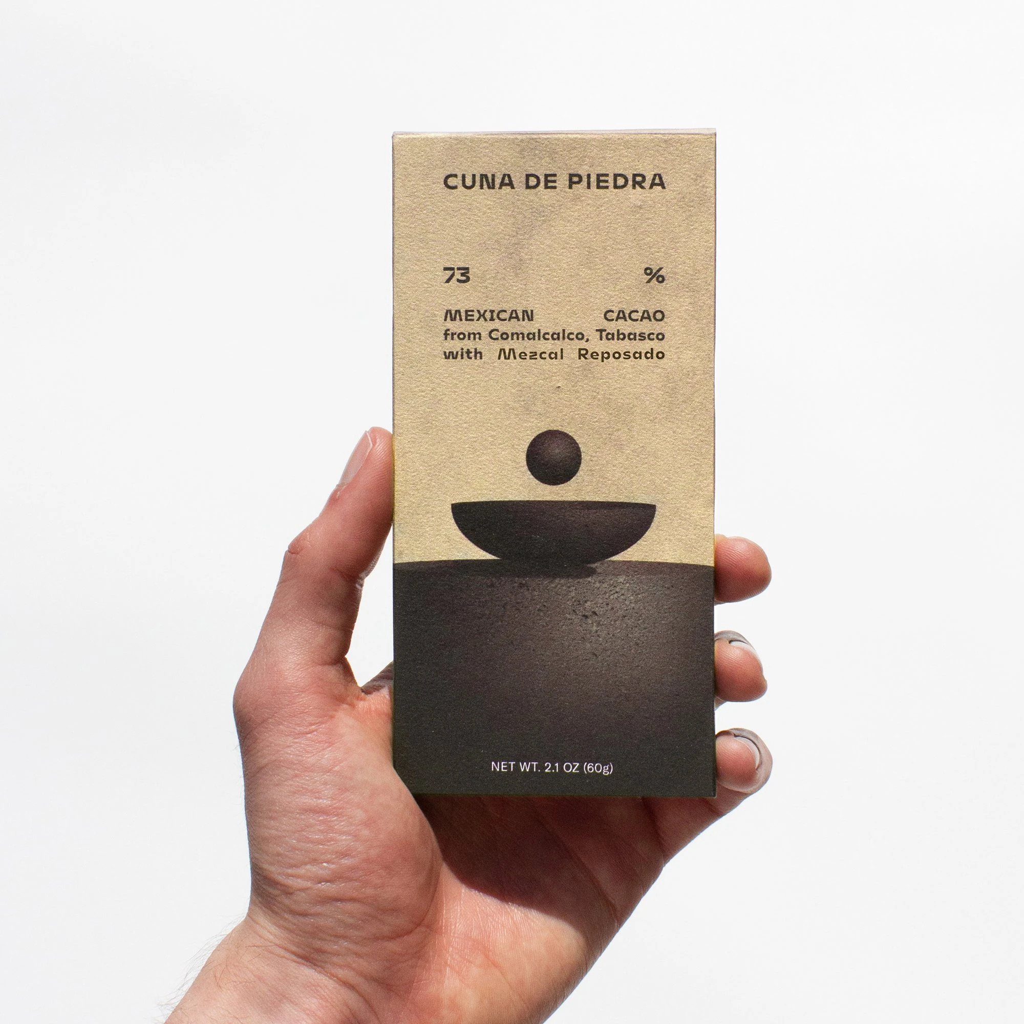 Mezcal made from 100% Maguey Espadín from Santiago Matatlán, a town located in the central valleys of Oaxaca, considered to be the “world capital of mezcal”. The agaves were crushed into an Egyptian stone mill, known as tahona, the liquid was fermented in oak vats, double distilled in copper stills and rested in white oak barrels for 2 years. For Cuna de Piedra’s cocoa beans from Comalcalco, Tabasco, They developed a high roasting profile which complements the woody notes of the final distillate.