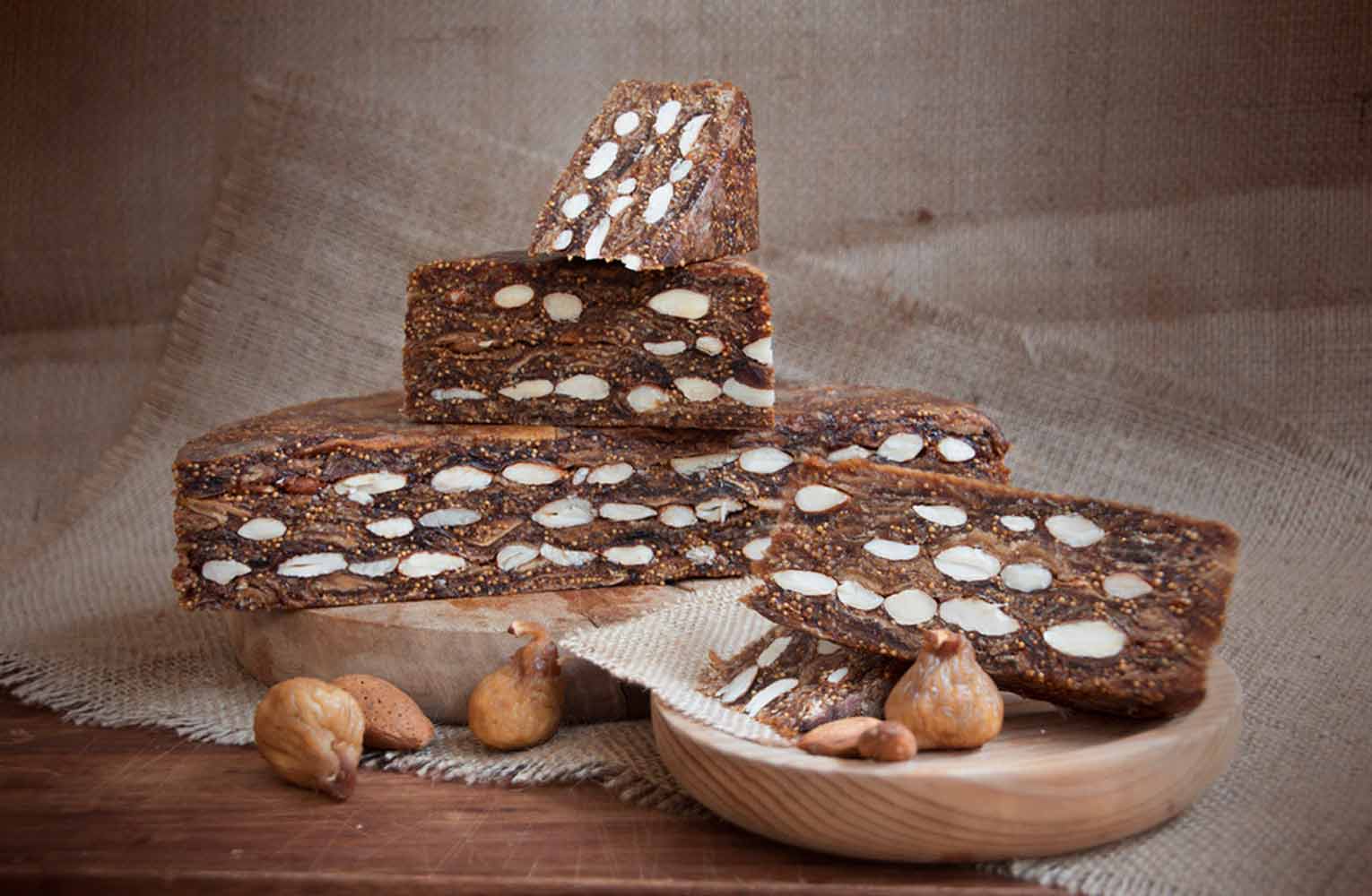 Mitica’s Fig Almond Cakes are made with premium whole Pajarero figs and Marcona almonds. It takes about 500-600 figs to create one 5kg cake. Workers destem the figs by hand. Today there are other companies importing fig cakes but they are a puree of stems, figs and other spices mashed into a bread.