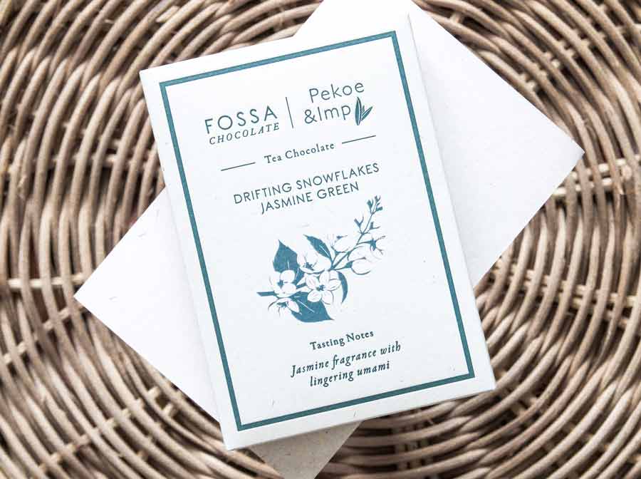 With layers of naturally floral Peruvian cacao, green tea and jasmine flowers, this chocolate has a depth of flavour with lingering umami and jasmine fragrance.