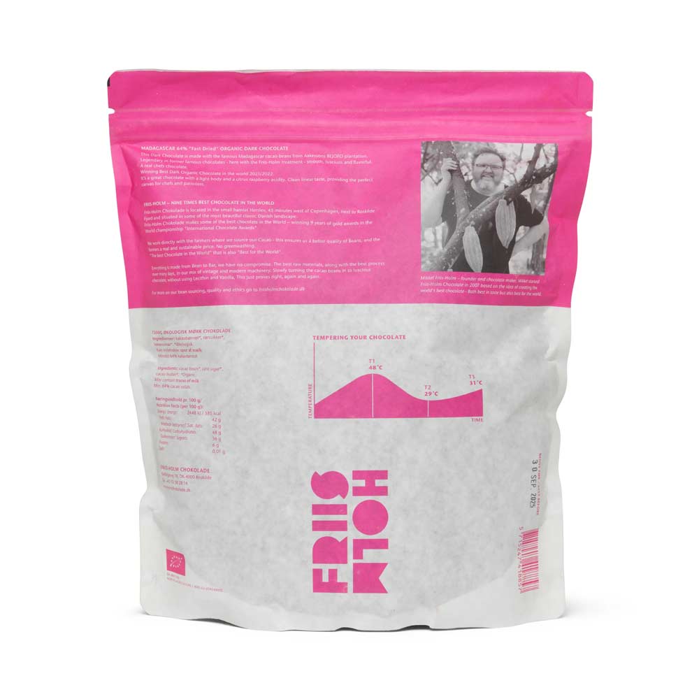 Discover the unique character of Friis Holm’s Madagascar 64% Fast Dried chocolate, crafted from premium cacao beans sourced from the renowned Bejofo Estate in Madagascar. This celebrated plantation is famed for producing some of the world’s finest cacao.