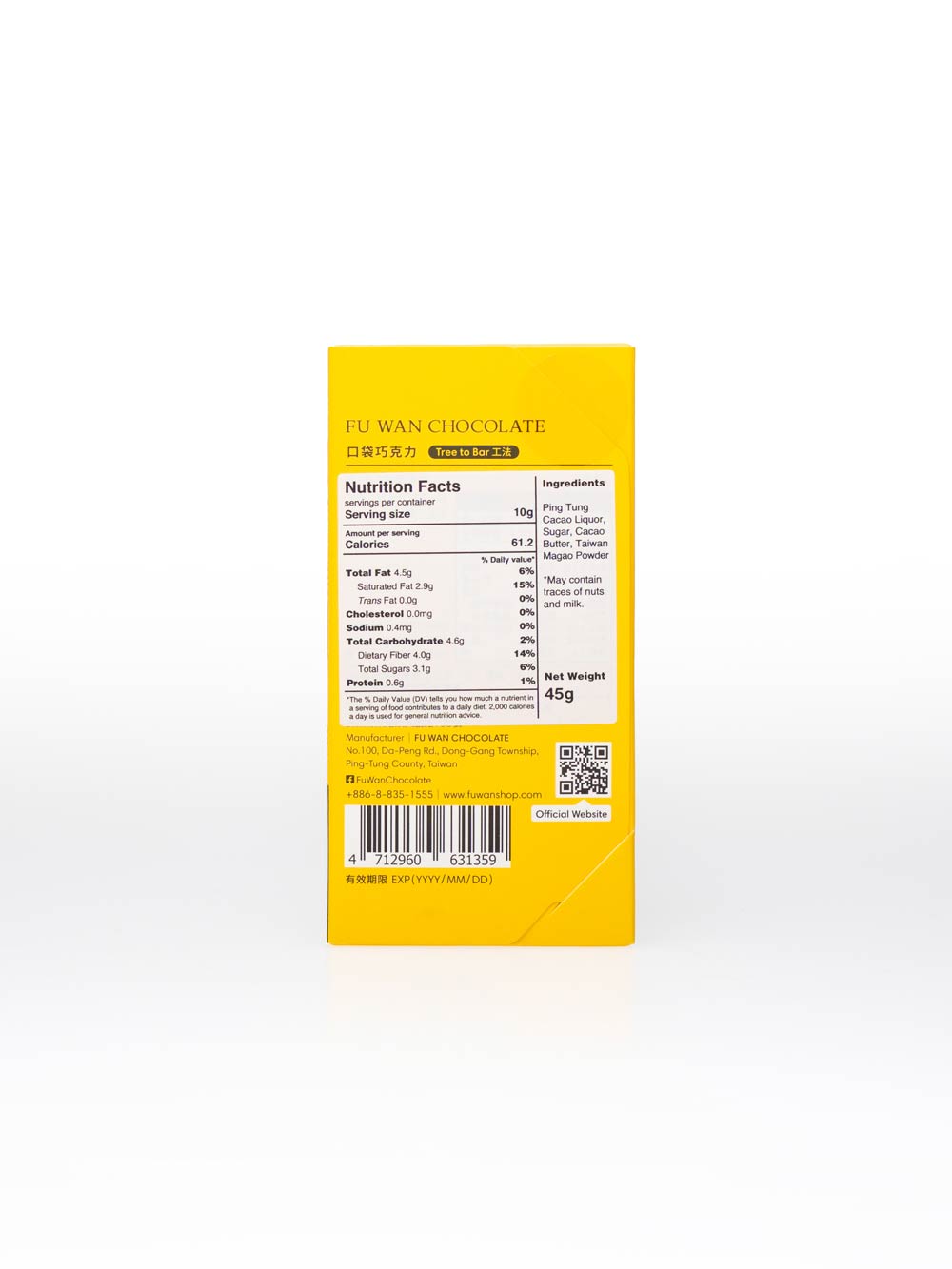 Grown, fermented, and produced in Ping Tung County, Fu Wan Chocolate captivates our imaginations with their innovations. Enjoy a taste of their island terroir.