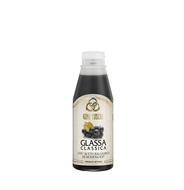 Gino Toschi glaze with Balsamic Vinegar of Modena (GPI) combines convenience and innovation, retaining all the tradition and unmistakable flavor of Balsamic Vinegar of Modena. Simple and ready to use, it goes perfectly with any dish, and the convenient cap with a pouring lip makes it ideal for garnishing all of your dishes.