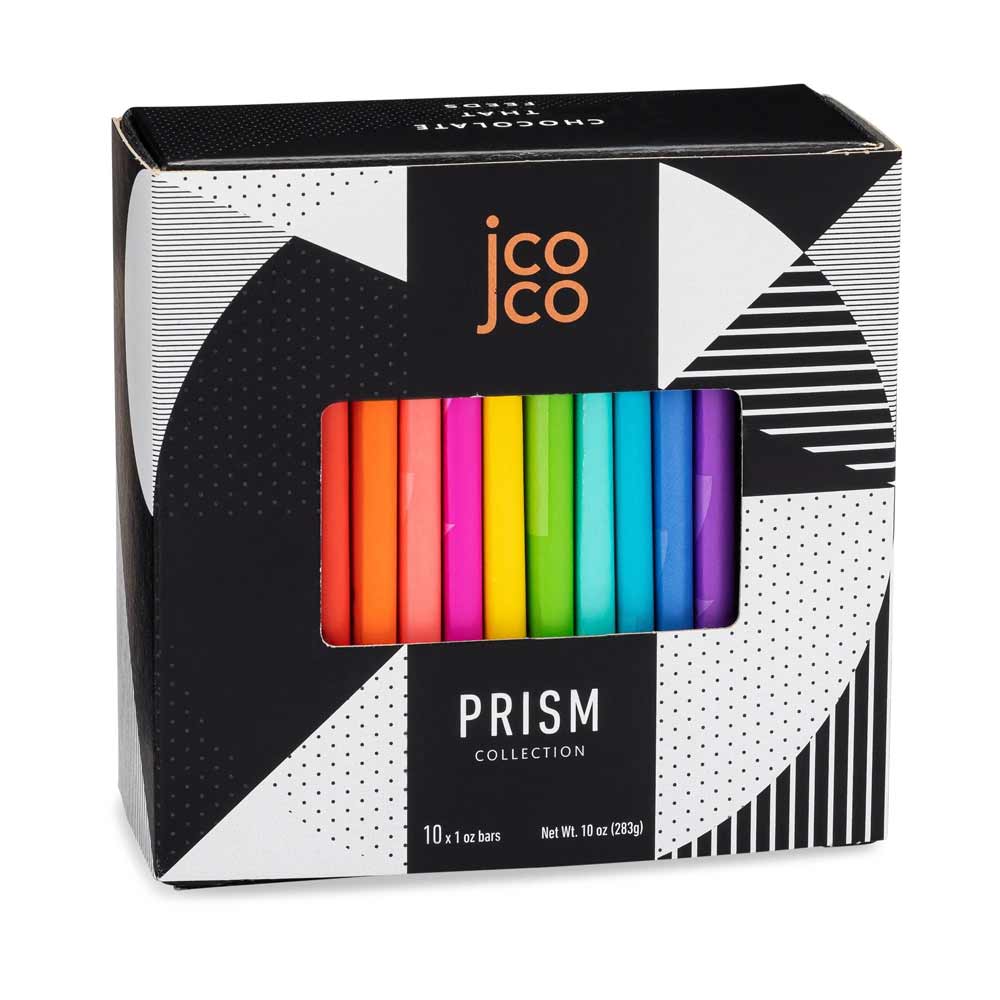 The Prism Chocolate Gift Box is the perfect union of three elements that define jcoco: transcendent flavors, colorful design, and their commitment to fighting hunger in their communities. This gorgeous 5.5″ x 5.5″ x 2.5″ gift box features 10 one-ounce delicious bars in each of their inspired flavors, perfect for taking a journey across the globe through chocolate.