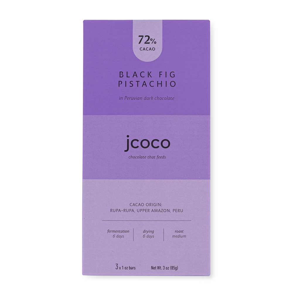 An elevated spin on the classic fruit, nut and chocolate pairing, this experience, in 72% Peruvian cacao, unites chewy California mission figs with crunchy pistachios. The cacao origin is Rupa-Rupa, Upper Amazon region of Peru. The beans are fermented 7 days, dried 7 days with a medium roast.