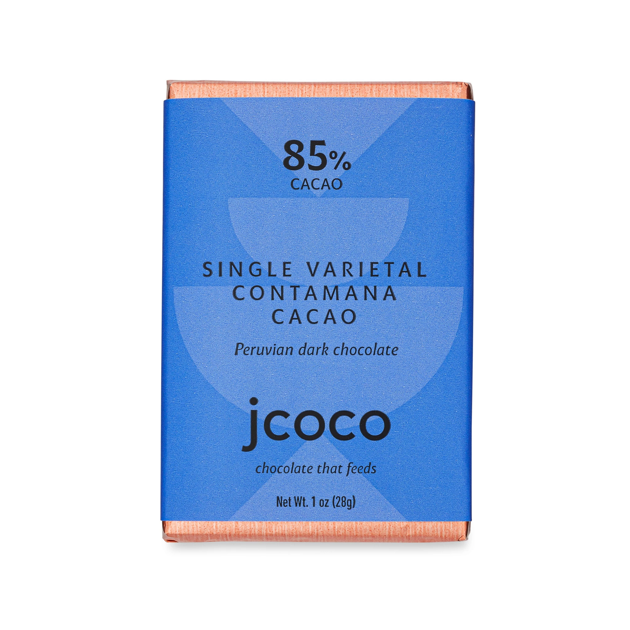 jcoco 85% Dark is crafted from a single Contamana varietal of cacao sourced from the Quillabamba region of Peru. Quillabamba valley is in the beautiful Cusco region, near famed Machu Picchu and is known for its unique fine aroma cacao trees. The beans are fermented 6 days, dried 5 days with a low roast to retain much of the cacao’s natural fruit flavor and acidity. The bar is low in sugar and high in antioxidants, heart-healthy cocoa butter fat, and rich, robust flavor.