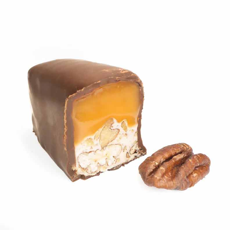 Mayana’s newsest release is finally here! Toasted pecans dance in their lusciously decadent vanilla nougat, which is expertly layered with their signature salted caramel.
