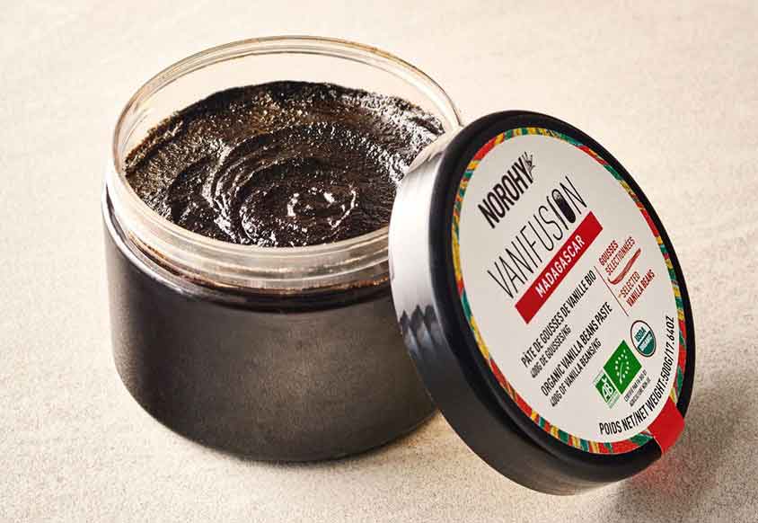 IN ONE SIMPLE STEP, ADD ALL THE COMPLEXITY OF VANILLA FROM MADAGASCAR TO YOUR CREATIONS. Vanifusion combines all the parts of a vanilla bean. A recipe without additives or flavor enhancers. Every 5g of Vanifusion paste = 3g of beans.