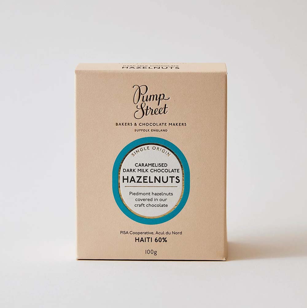 Pump Street Chocolate’s Haiti 60% Dark Milk Caramelized Hazelnuts are a rich, indulgent treat that brings together the perfect crunch of Piedmont hazelnuts with the deep, complex flavors of their single-origin Haitian dark chocolate. Each hazelnut is gently caramelized and enrobed in smooth, bold chocolate, offering a balance of notes including dark fruit, caramel and warm spice finished with a satisfyingly nutty bite.